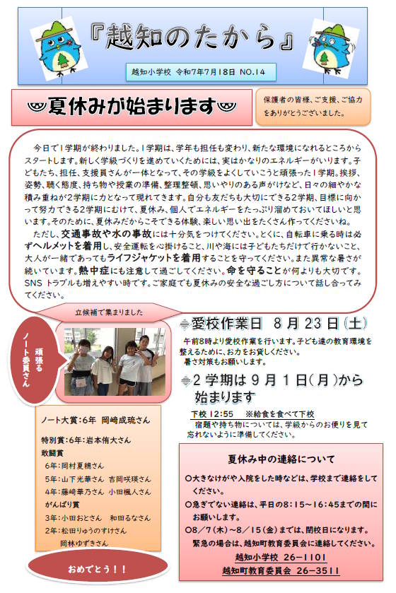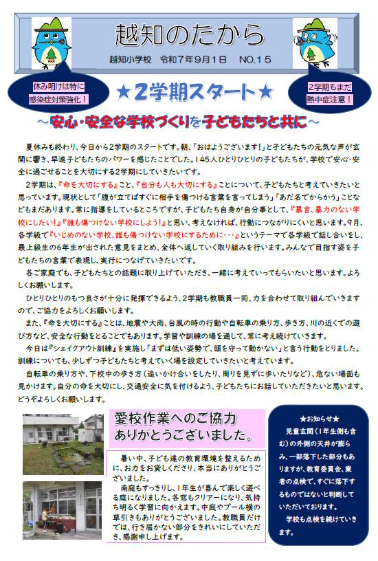 学校だより「越知のたから」第13~15号を掲載しました 「越知のたから」第13号 PDFファイルはこちらから 「越知のたから」第14号 PDFファイルはこちらから 「越知のたから」第15号 PDFファイルはこちらから